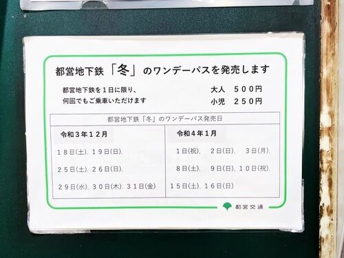 理不尽にも今年の「春」「夏」「秋」と都営地下鉄のワンデーパスの発売が中止されていたが、新型コロナウイルス感染症の状況が落ちついているから、ついに2021年「冬」から発売が再開された。この「ワンデーパス」とは、東京都交通局から不定期に発売される…