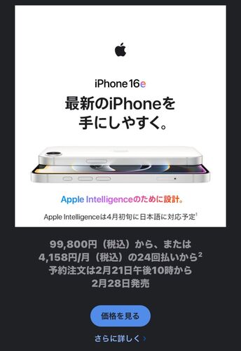 Appleの予告したとおり、iPhone 16eが発表された。 リーク情報どおり、SE3の後継のSE4ではなく、「iPhone 16e」として新たな製品展開となった。以下、製品発表で思ったことを列挙する。 価格設定 iPhone 16eの価格は99,800円から(米国では599ドルから)とな…